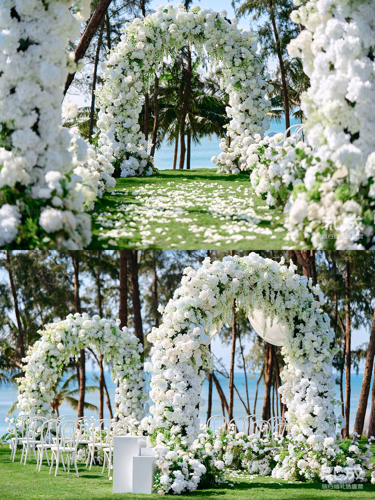 以花为拱,揽尽一片蓝白浪漫